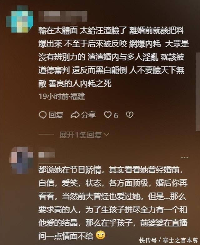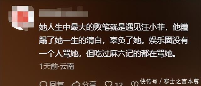 有网友觉得汪小菲母子对大S不好,甚至还有网友将此前大S和汪小菲母子旧账翻了出来。 但也有网友认为汪小菲母子很无辜,和大S只不过是有缘无分罢了。 可在这一众声音中,有个网友的评论受到不少人赞同,那就是她很多不好的经历,都是因为太爱小S导致的。