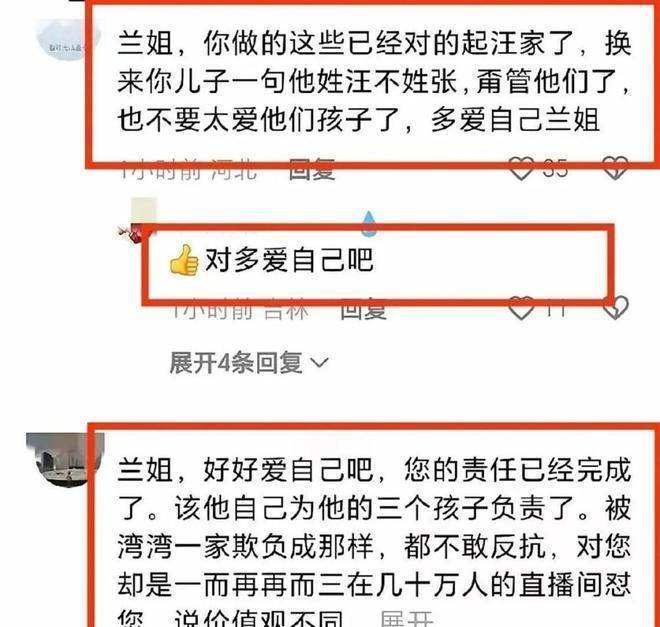 其中,有网友直言:没有张兰,你汪小菲算什么?虽然这话带有情绪,但不得不说,这句评论是有理有据的。网友们清楚记得,在汪小菲与大S的风波中,正是张兰的力挺,让他避免了被公众口水淹没。如今,汪小菲日子好了,有了新妻子和新儿子,却反过来嫌弃母亲,这让许多人感到失望。更有心疼张兰的网友在她的直播间留言劝道:兰姐,别管了,保重自己吧,别再拿热脸贴冷屁股了。