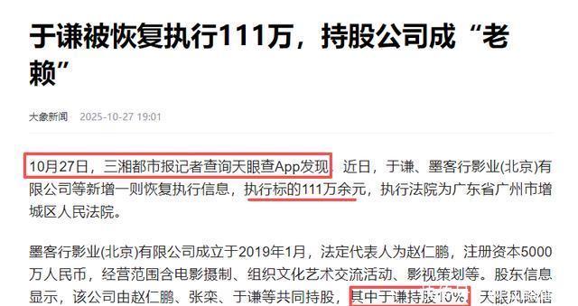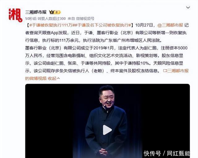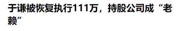 信息来源:大象新闻于谦被恢复执行111万,持股公司成“老赖”